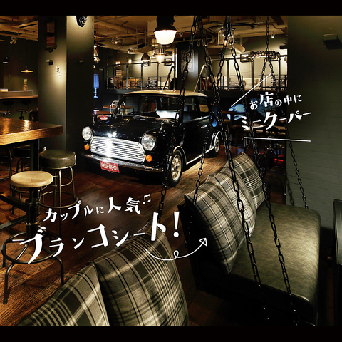 “大人の遊び場”をイメージした店内には、個室や店内中央にディスプレイされた一際目を引くミニクーパーやブランコのカップルシートも♪遊び心あふれる空間が広がっています♪合コンや女子会にもぴったり!あまりお酒が飲めないお客様にも楽しんでいただけるよう果実酒や種類豊富なカクテルもございます♪