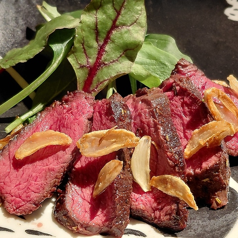 北海道産鹿肉が入荷!低温調理した鹿肉を、たたき、ステーキ、串焼きにしてご提供♪鶏・豚・牛よりヘルシーで栄養豊富な鹿肉をこの機会にご賞味あれ・・・♪他にも炭火串焼き盛りや、揚げ物など・・満足◎
