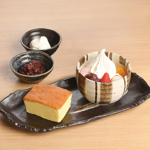 人気のクレミアソフトを使ったあんみつと、当店自慢のこよりのどら焼きがセットになりました!