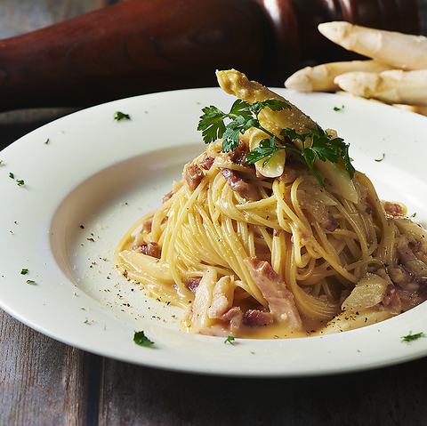 ピザ・パスタ・お肉・デザートと旬の食材を満喫できます♪季節によって内容が変わるため、旬の味覚をお楽しみいただけます!2時間飲み放題つきプランなので歓送迎会や宴会にぴったり!3000円以上のコース(ディナータイム)をネット予約いただくと最大1200Pが付与されるので、他のコースもぜひご確認ください☆