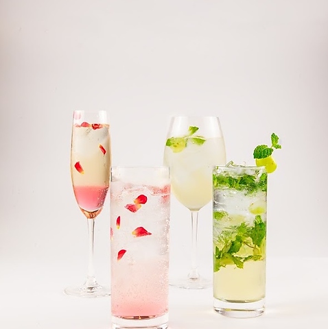 | カクテル各種 | 合計約40種以上 ジン/ウォッカ/カシス/カンパリ/ピーチ/ライチ/赤ワイン/白ワイン |