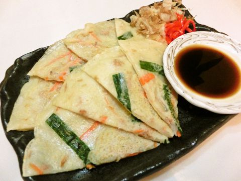沖縄風のチヂミです。おやつ、酒の肴にも人気で、台風時の非常食にもなります。