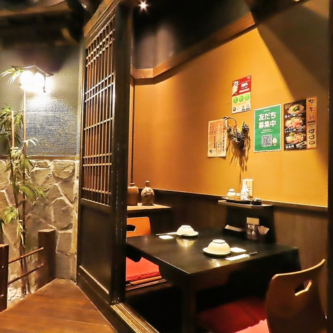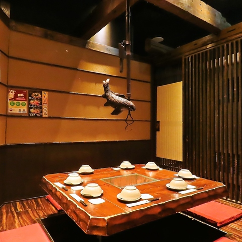 掘りごたつタイプのお席は足をおろしてゆったりおくつろぎ頂けます♪様々な個室をご用意しておりますので、人数に合わせたお席にご案内いたします!会社飲み会や2次会、お友達同士、ご家族でのご利用にもおすすめ◎古民家風の造りはまどろみの時間を演出。自慢の創作料理で最高の時間をお過ごしください♪