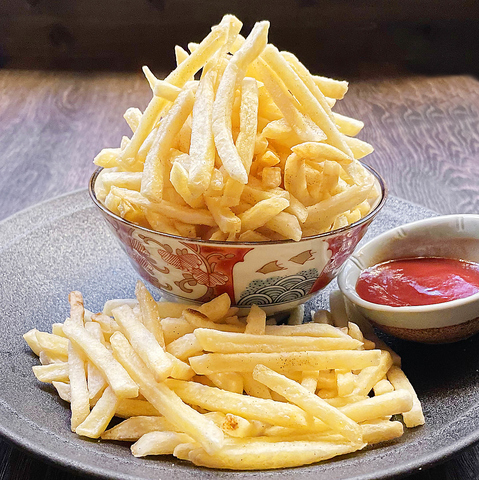 筑前屋名物!バカ盛りシリーズ!写真以上に山盛りてんこ盛りに驚きと喜びの声多数☆バカ盛りシリーズは唐揚げ、ポテトの2種ございます!ぜひご堪能下さい♪