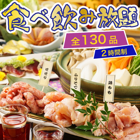 【食べ飲み放題コース】選べる鶏鍋と鶏タタキなど豪華食べ放題<130種>5500円⇒5000円◇120分飲み放題つき
