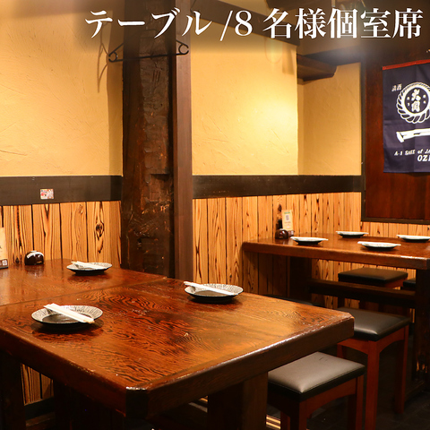 【2~8名様個室席完備】雰囲気自慢の個室席は数に限りがございますので、お電話での確認をしていただくとスムーズです。最大8名様までの個室席/最大50名様まで可能な掘りごたつ座敷席をご用意!でゆったりと宴会をお楽しみ頂けます♪飲み会や同窓会、打ち上げなど宴会ご予約受付中!
