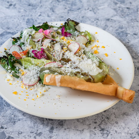 薪火で香ばしくグリルしたサラダに自家製シーザードレッシングで仕上げサラダ