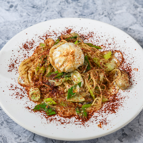 京都の伝統野菜九条ネギがズワイガニの風味などを引き立てる凄いペペロンチーノ