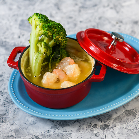 地中海の港町リヴォルノの郷土料理。魚介を濃厚なトマトスープでじっくり煮込みました。お作り直しでリゾットも可能です。