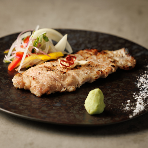 北海道の日高生まれ、黒豚の血統を含む四元豚の日高四元神威豚。さっぱりしつつもとろけるような黒豚の旨味と甘味が絶品の神威豚をシンプルにグリルで。