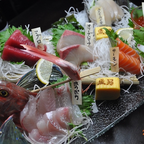 当店自慢の鮮魚は、その日に仕入れた新鮮なものをご提供しております。その時期に一番美味しい食材を厳選してご用意しております。その時期の旬のお刺身を是非ご賞味ください。毎日市場から仕入れる新鮮鮮魚を使用した刺身盛り合わせは、お酒との相性抜群!