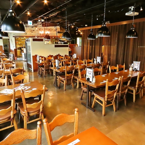 【テーブル席】ビアホールをイメージした店内。人数に応じて席を仕切ることができます。