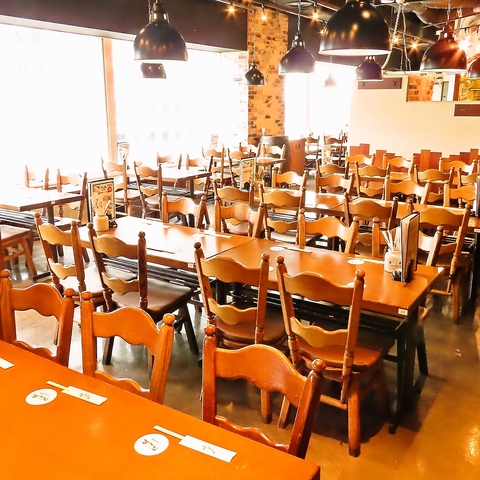 大きな窓の広々とした開放的な空間で、ゆったりランチ・ディナーはいかがでしょうか?様々な人数でご利用いただけるテーブル席や、少人数でも使いやすいカウンター席がございます。ぜひお気軽にお越しください。