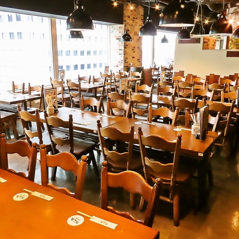 大きな窓の広々とした開放的な空間で、ゆったりランチ・ディナーはいかがでしょうか?様々な人数でご利用いただけるテーブル席や、少人数でも使いやすいカウンター席がございます。ぜひお気軽にお越しください。