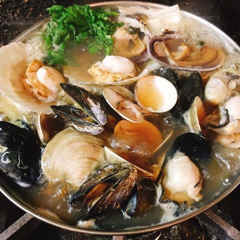 大アサリ、ホタテ、牡蠣など貝好きの方に大人気な貝鍋!※ご注文は2人前より。スープの味は醤油・味噌・チゲからお選びできます。1人前1,848円