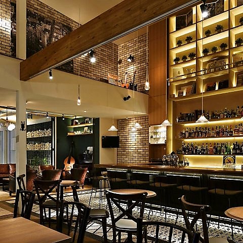 ニューヨークの街角をイメージされた店内は、解放感ある吹き抜けの造り。モダンなセンスを取り入れながらスタンダードも忘れないニューヨークの街角にあるようなインテリアにもこだわっております。