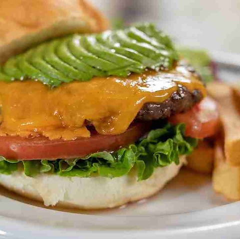 肉汁あふれるジューシーなパティに、とろける濃厚チェダーチーズとクリーミーなアボカドを贅沢にトッピング。コク深いチーズの旨みと、アボカドのまろやかさが絶妙にマッチし、最後まで飽きずに楽しめる人気バーガーです!ボリューム満点なのに重すぎない味わいで、女性のお客様からも支持多数!