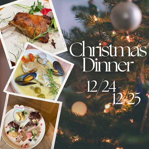 前菜の盛り合わせからはじまり、メインに鯛のアクアパッツァと鴨肉のローストを主役に、デザートは当店オリジナルのクリスマス仕様のプレートを楽しんでいただけるフルコースです!カップル、女子会、家族など、大切な方々と素敵なクリスマスをお過ごしください