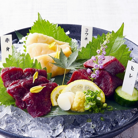 厳選馬肉 馬刺し3種盛り合わせ(赤身、コウネ、ヒレ)