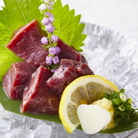 肉厚な馬肉を使用したごかもんの逸品!馬肉は別名「桜肉」と呼ばれています。この由来は、新鮮な空気に触れると桜色になるため、桜が咲く時期においしいため、江戸幕府の牧場が千葉県佐倉市にあったため、などと言われています。