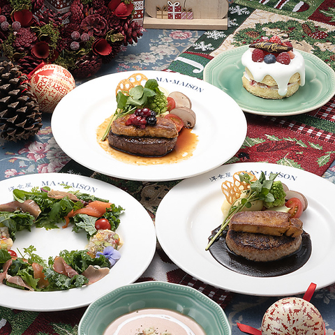 《12月19日~25日限定》7日間だけの特別クリスマスディナーをご用意。大切な人と過ごす贅沢なひとときを、ぜひマ・メゾンで。12月10日までの早期予約で特製ケーキを1個プレゼント。ご予約はお電話で受付中。