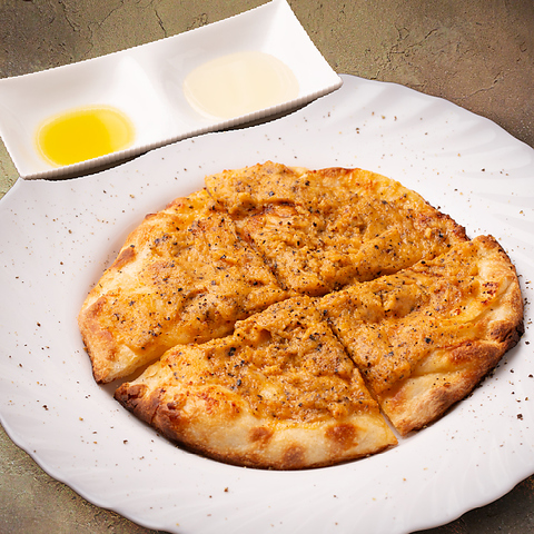 炭火で焼き上げたナンに、青森県産にんにくと香り高いカスリメティを合わせて風味豊かに仕上げました。付属のエクストラバージンオリーブオイルを添えて、さらに奥行きのある味わいをお楽しみいただけます。