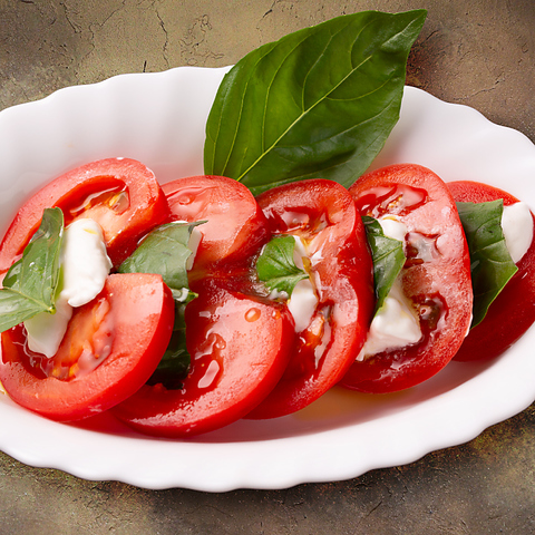摘みたてバジルとたっぷりモッツァレラのカプレーゼ ~トマト、バジル、モッツァレラの三重奏~