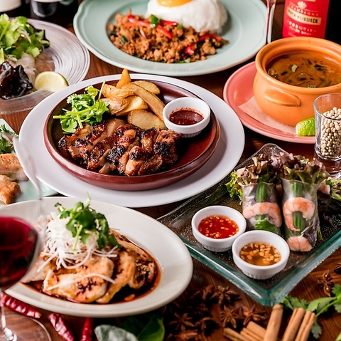 2.5h飲み放題(ラストオーダー30分前)人気エスニック料理 ボリューム満点のコース!大人気の生春巻き、海老トーストやお肉料理、メインのガパオまで!定番のエスニック料理を満喫できるコースです!