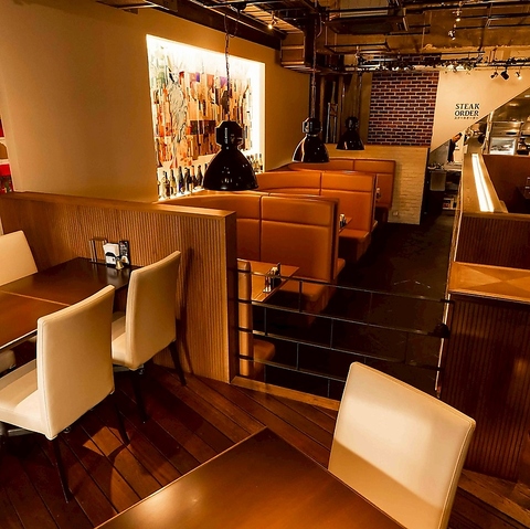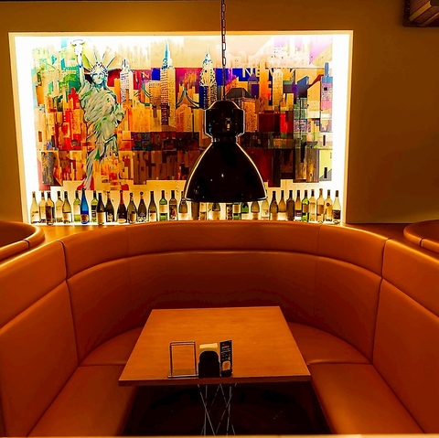 アメリカンダイナーを思わせる店内で、自慢の料理と世界のワインでゆったりと素敵な時間をお過ごしください♪1階席ソファ席は周りと仕切られており、プライベートな空間をお楽しみいただけます。テーブル席もゆとりをもって設置しており、つなげることで最大12名様でのご利用もいただけます。