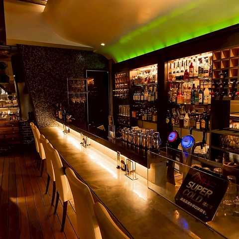 1人で過ごしたい時にお薦めなのがバーカウンター席。食事を楽しむもよし、グラスをかたむけるもよし。