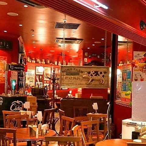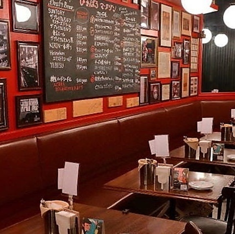 赤色の壁にびっしりとアートパネルが飾られているおしゃれな店内。少人数のご利用はもちろん、テーブルを繋げて大人数でのご宴会も◎会社宴会やお仕事帰りの飲み会、デート、女子会などにぴったり。店舗貸切は着席で最大70名様まで可能です。お気軽にお問い合わせください♪