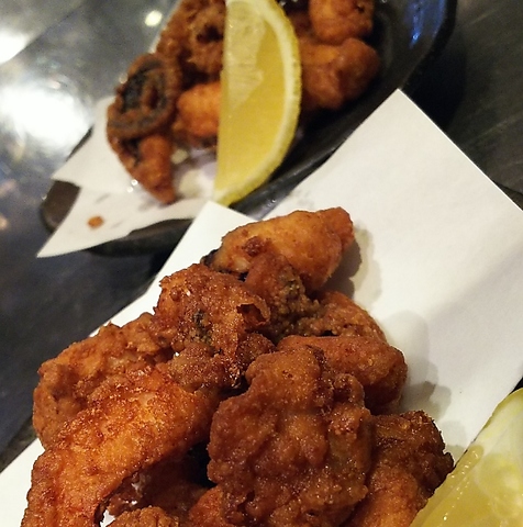 日替わりの魚を丸揚げにした一品。さっぱりおろしポン酢との相性がいい。焼き魚と違い食べごたえあり!