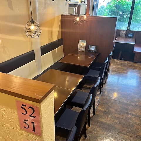 入り口から一番近いこのお席は車いすやベビーカーのままでご利用いただける片側ソファのテーブル席をご用意しております。バーコーナーからも近いので様々なシーンでのご利用ができます♪ご予約も承っております。詳細は店舗へお気軽にお問合せください。