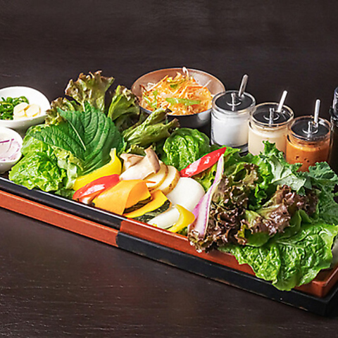 兵庫県の農家さんを中心に新鮮野菜をご用意。常時30種類のお野菜をサムギョプサルや食べ放題ビュッフェなどに使用し、栄養バランスにも気を配った「安全でおいしく健康に」をコンセプトにしたお料理のご提供を心掛けています。