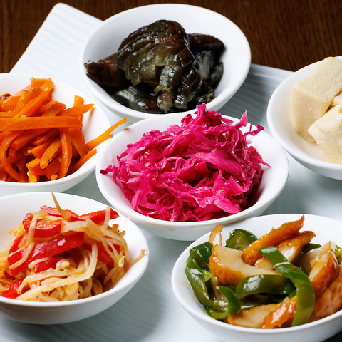 当店自慢の「おばんざい」は、旬の食材をふんだんに使った、心温まる家庭料理です。定番のものから季節限定のものまで、毎日内容が変わりますので、訪れるたびに新しい美味しさに出会えます。健康的なお野菜中心のおばんざいで女性にも人気です。