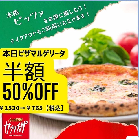 お店で生地から作る手作りピザは絶品★木曜日限定で半額に!※祝日の場合はご利用いただけません。