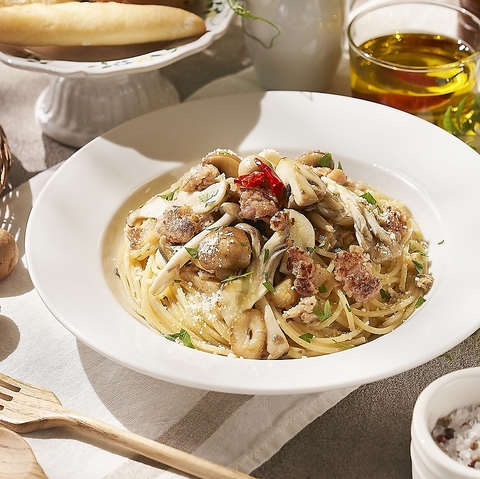 【スパゲティ・ペンネ】イタリア産のパスタをオーダー毎にアルデンテに茹で上げて提供。【生パスタ】乾麺では味わえないモチモチした食感。【ピッツァ】お店でじっくり発酵させて仕込んだ生地を、300℃のオーブンで一気に焼き上げてお持ちします。