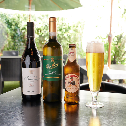 イタリアンビールとバルバレスコのワインございます!楽楽しいひとときをどうぞ。
