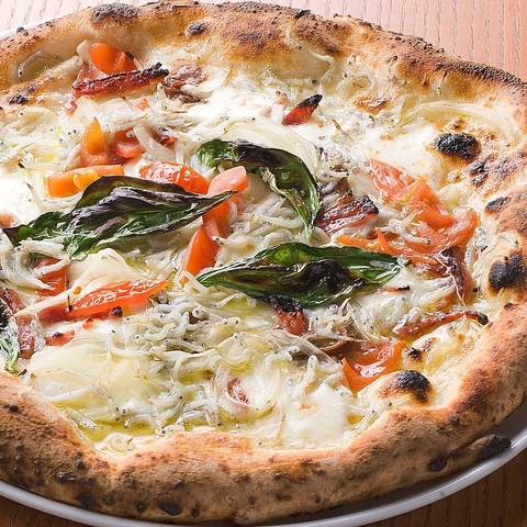佐田岬産のしらすをふんだんに使用した至福の一皿★イタリアから届いた薪窯で焼くピッツァは、外はカリッと中はもっちり♪1枚1枚注文が入ってから焼き上げます。他にも王道のマルゲリータや、世界チャンピオン監修のカンピオーネなど、多彩なメニューが勢揃い!!素材の旨みを活かした本格ピッツァを是非ご賞味ください!