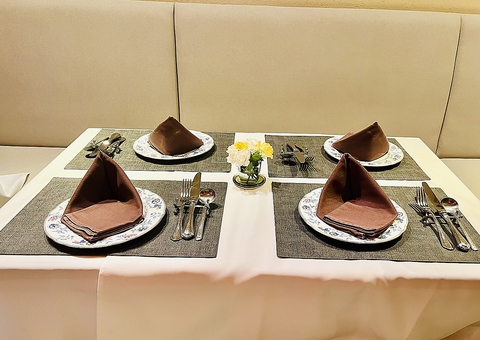 4名様がけのテーブル席。ご家族、ご友人打ち合わせ等で幅広くご利用くださいませ。