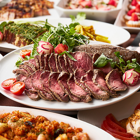 肉汁あふれる「あか牛のローストビーフ」をはじめ、バリエーション豊かなシェフ特製料理を心ゆくまで。