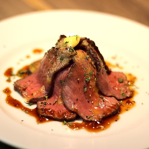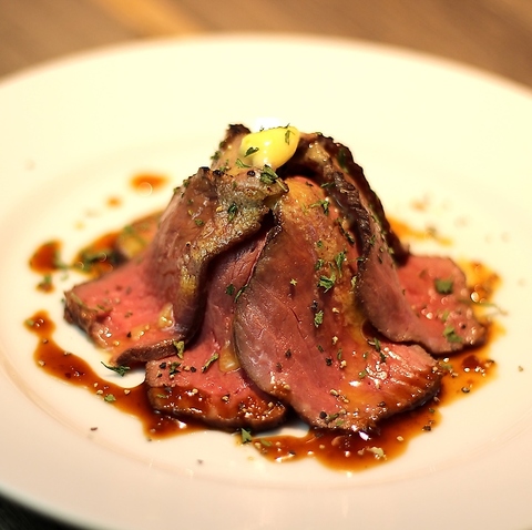 - 【RARE BEEF】北道産牛イチボを丁寧に真空低温調理したレアビーフは肉刺しのような超一流の味わい。