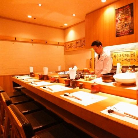 カウンター上にはその日仕入れた新鮮なネタが並んでいるネタケースがございます。様々な海鮮、四季ごとの寿司ネタを陳列しております。新鮮で美味しそうな寿司ネタをみれば、出てくるお寿司への期待も高まります。