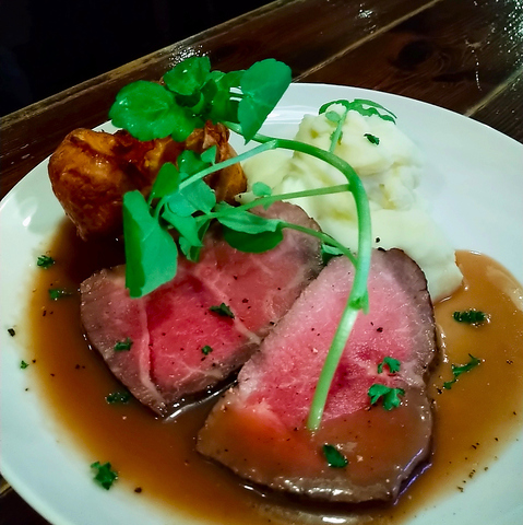 イギリスを代表する家庭料理の1つです。週末に食べる伝統的な食事です。ローストビーフ・チキン・マッシュポテト・ヨークシャープディング・サラダのワンプレート料理。