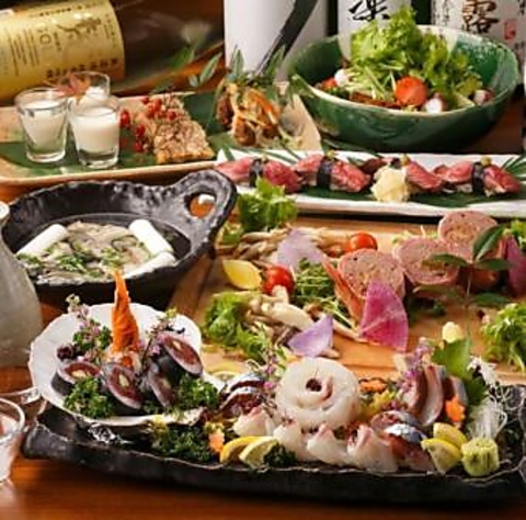 「旬仙の月替わりコース」は、前菜から〆ものまで毎月メニューが変わる会席コース◎その季節の厳選食材を贅沢に使用するため、大変ご好評いただいております♪会社の各種ご宴会はもちろん女子会や懇親会などの飲み会、ご家族様の食事会などにも最適です!また、90分飲み放題も付いて4000円(税込)~の圧倒的コスパでご提供♪