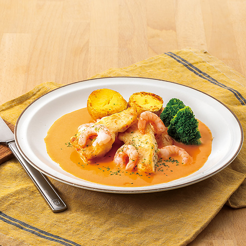 白身魚をクリーミーなイセエビソースで仕上げました。