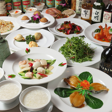 鹿児島産辛味水餃子と牛肉のオイスターソース炒め、人気の黒酢スブタ全10品ご用意致しました。飲み放題は生ビール・ハイボール・紹興酒・日本酒などを揃えた豊富なラインナップ。各種宴会にぜひご利用ください