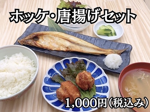 ほっけ・唐揚げセット 1100円(込)サラダ・味噌汁付