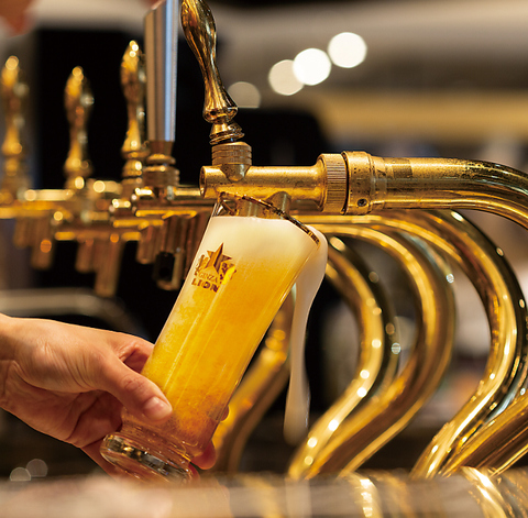 生ビール専門店「銀座ライオン」。プレミアムも揃えた豊富なラインナップ。伝統の「一度注ぎ」に徹底的にこだわります。すっきりとしたクリアな飲みやすさと、美しい黄金色のきめ細やかな泡のコントラスト。一世紀以上受け継がれてきた伝統の生ビール抽出方法「一度注ぎ」で、“極上の一杯”をご提供いたします。