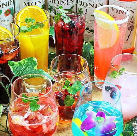 飲み放題の種類の多さには自信があります!その数【約100種類】からお好きなドリンクを選べちゃう!生ビールを始め、自家製ネード、サングリアなど、今日はノンアル気分の方へも自家製レモンスカッシュやモクテルなどなど幅広くご用意しております◎これだけ飲めて1,980円!、是非ARCHに来たら飲み放題がオススメです♪